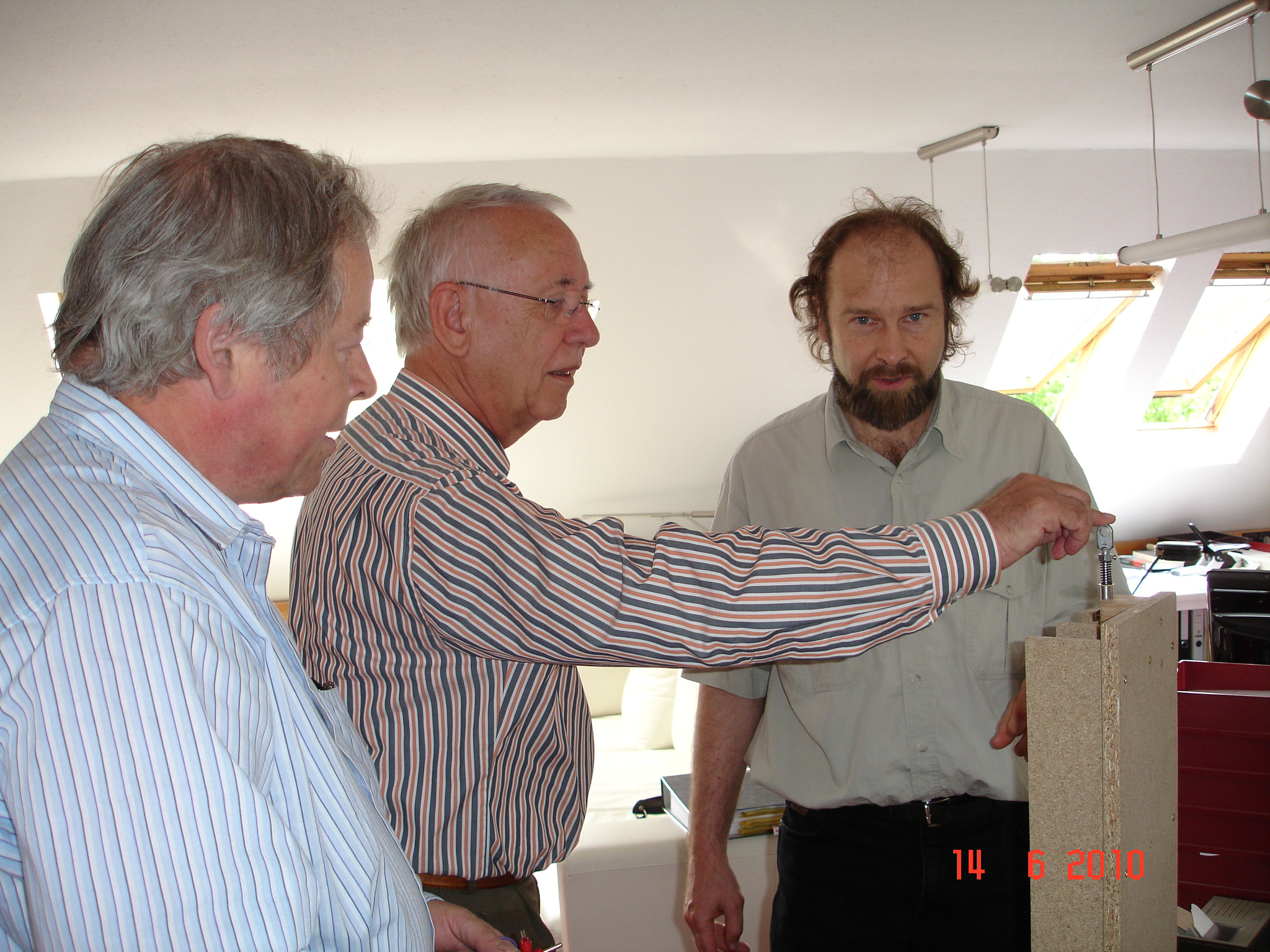 August 2012: Die Experten im Projekt Bandonion MIDI diskutierten mit Fachleuten der Musikhochschule Linz bestimmte techn. Vorschläge/Änderungen am klassischen Bandonion und dem „MIDI-Bandonion“. derartige Workshops geben den Projektteam die Chance aktuelle Anpassungen vorzunehmen. Im Bild die Musiker aus Linz im Gespräch mit dem Team der Bandonionfabrik Klingenthal.