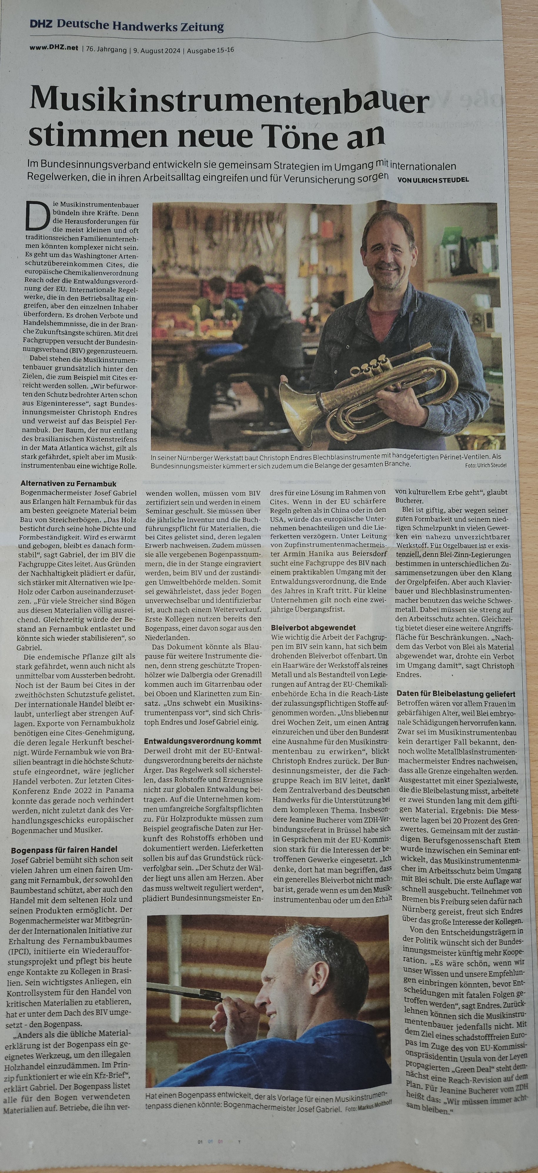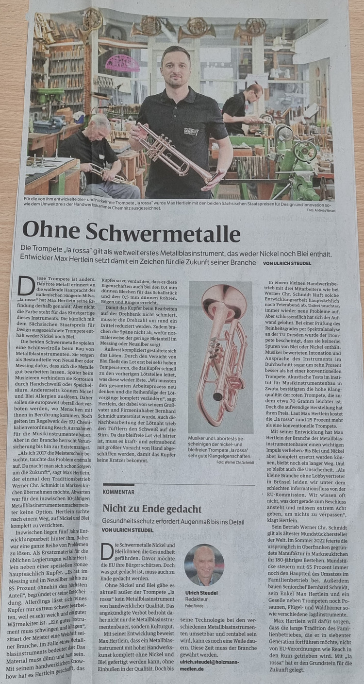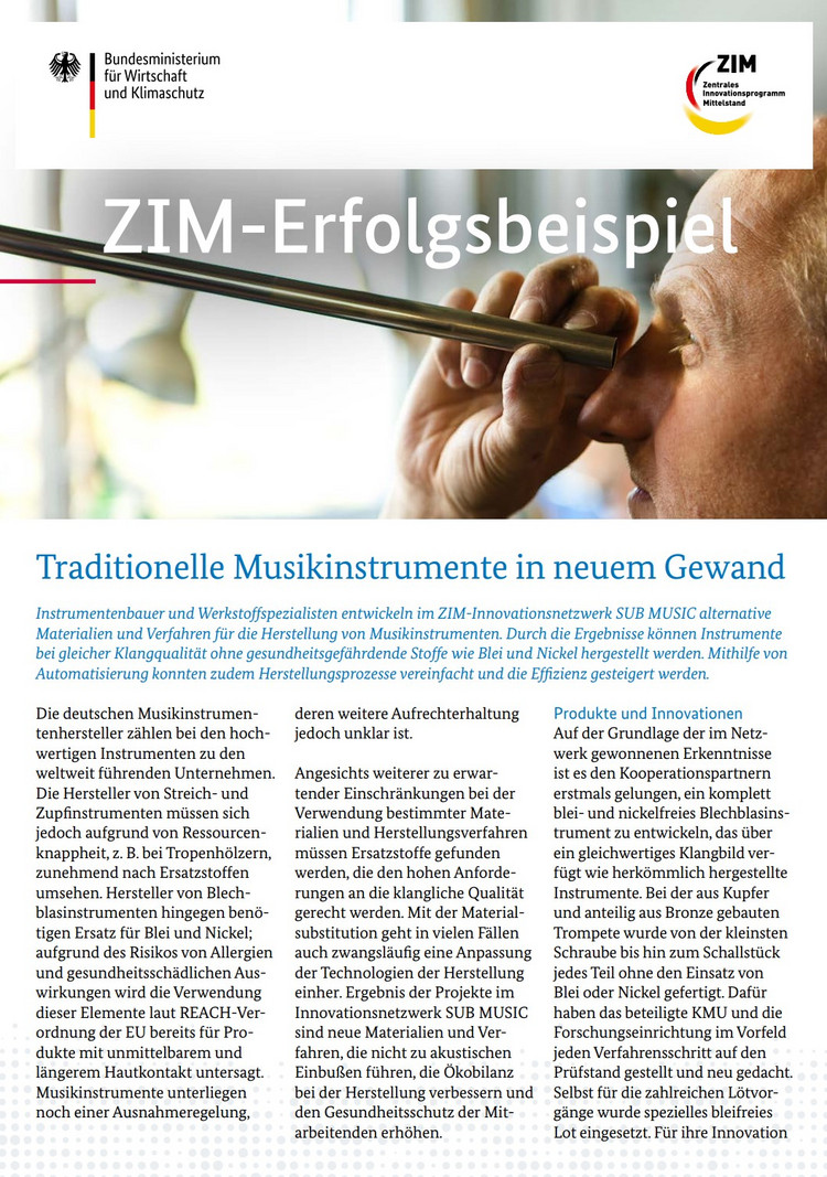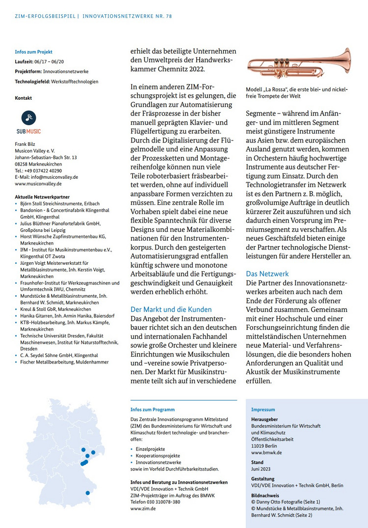 Wir freuen uns über den Erfolg des Kooperationsprojektes der Firma Werner Chr. Schmidt Mundstück - und Metallblasinstrumentenbau und dem Institut für Musikinstrumentenbau Zwota (IfM).