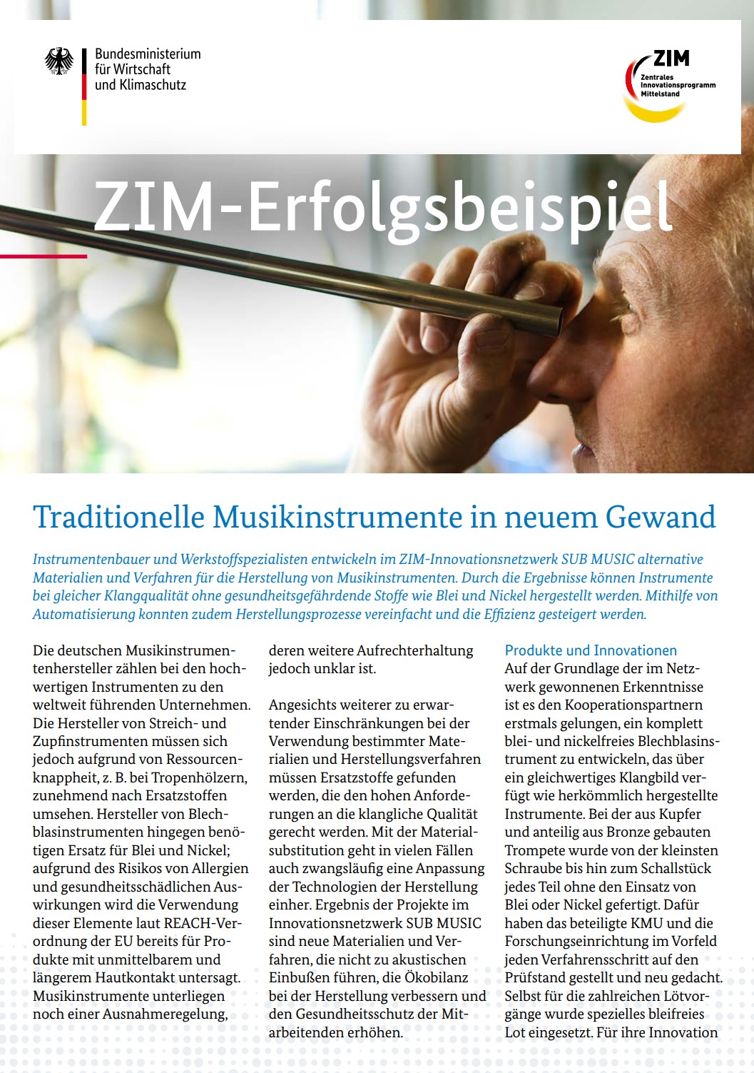 Super Start ins Jahr 2019 - sub music Kooperationsprojekt zum Thema "Material - und Verfahrenssubstitution im Metallblasinstrumentenbau" gestartet. Mit 3 Partnerfirmen und dem