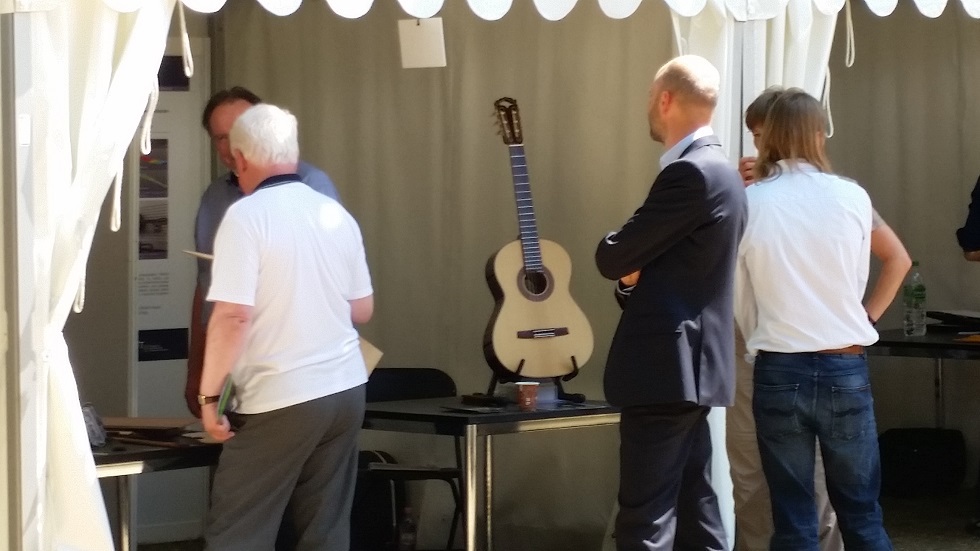 Mit Ergebnissen aus dem Projekt der TU Dresden mit der Firma Hanika Gitarrenbau (Entwicklung der technischen Lösung und des Verfahrens für die Herstellung von Bauteilen für den Konzertgitarrenbau aus thermisch behandelten einheimischen Holzarten) waren wir vor Ort. Vielen Dank an das BMWI für die Möglichkeit der Präsentation.